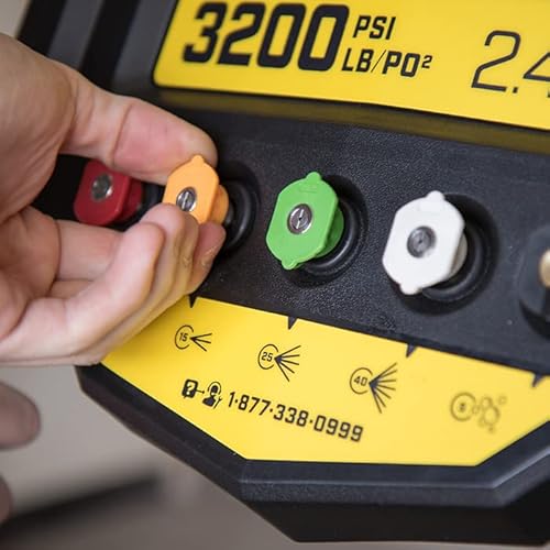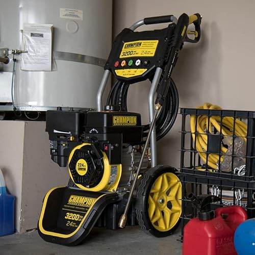 - KEY FEATURES: 3200 PSI, 30cm never flat wheels, 224cc 6.8HP engine, easy pull recoil start, low oil shut-off sensor, durable steel frame, threaded gun, and wand fittings.