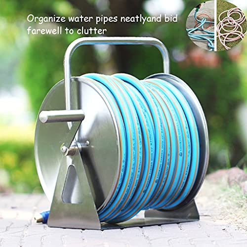 - 【Portable Garden Hose Reel】: Looking at the messy water hoses on the ground, you must be worried! This garden hose reel is compact and has a U-shaped handle on the top, which is very convenient to move. With the help of the metal crank on the side, you can easily store the messy water hoses in an orderly manner, preventing the water hoses from tangling and saving space effectively