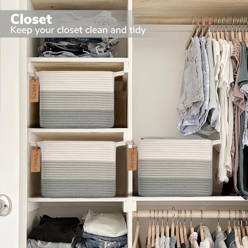 - Unique Design: The closet basket is made of soft woven cotton rope and has two sturdy handles, making it easy to carry and store. The touch is comfortable, and even heavy objects will not bind your hands. In addition, the storage basket available in different unique colors, providing a great matching style for any room in your home