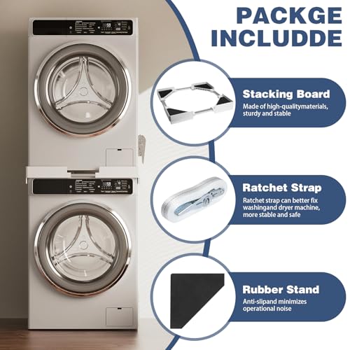 - 【QUALITY MATERIAL】The washer stacking kit is made of high quality plastic and stainless steel, sturdy and durable, with long service life and strong load capacity, to ensure your safety in everyday use.
