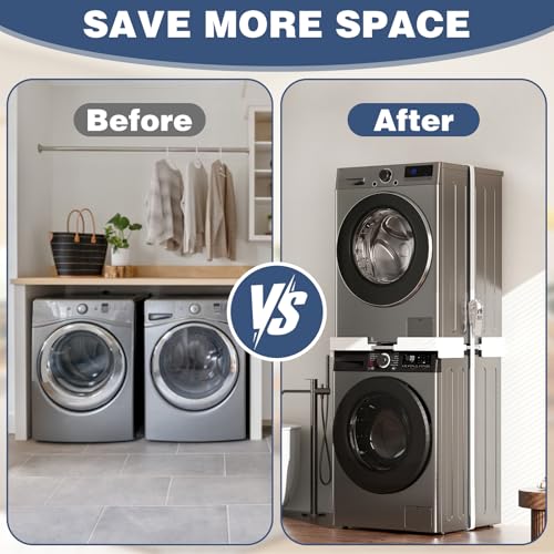 - 【ADJUSTABLE SIZE】You can easily adjust the size of our stacking kit for washer and dryer according to the size of your washer and dryer. Our universal stacking kit fits 42-70 cm washer and dryer lengths. Please check your machine size before purchasing.