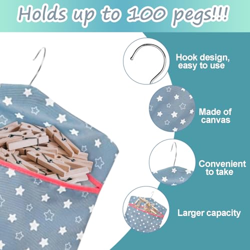 Peg Bag, Star Print Reusable Peg Basket for Washing Line with Hanger | Easy Hanging Hook Holds Up to 100 Pegs, Pegs for Washing Line with Bag, Durable Canvas Storage Bags for Outdoor & Indoor Use
