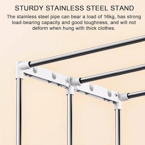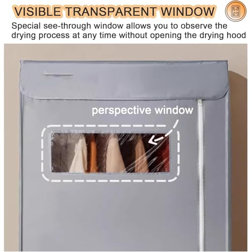 - LARGE CAPACITY & HIGH QUALITY: The heated airer has 2-tier rack design.Visible transparent window design, you can observe the drying process at any time without opening the drying hood. Made of high-quality stainless steel, which greatly improves the stability and durability of the heated clothes airer, is not easy to rust. The 15KG load-bearing drying rails are strong and not easy to deform. Size: 148x75x45cm.
