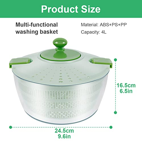 - Sunhotty 4L Salad Spinner Manual Salad Washer with Drain and Handle Salad Dryer with Vegetable Washing Basket Multi-Function Lettuce Spinner Fruit Washer for Vegetable Pasta Fries Kitchen(green)