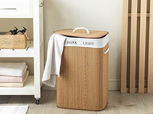 ENGLISH HOME Bamboo Foldable Laundry Basket with Lid, Hamper Basket with Removable Liner, Storage Organizer, Washing Baskets for Laundry Bathroom, 72 L, 35x35x60 cm, Brown