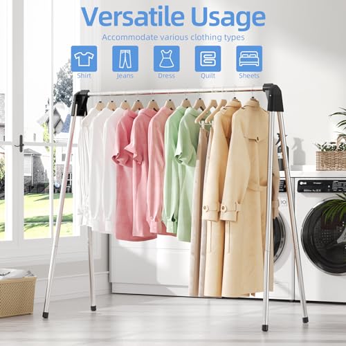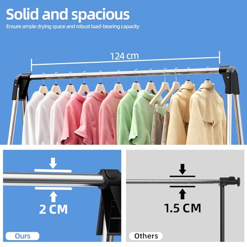 SYKIARIOL Clothes Rail, Efficient Clothes Drying Rack, Stainless Steel Clothes Rail, Collapsible Drying Rack, Foldable Drying Rack, Heavy Duty Stainless Steel Clothes Airer