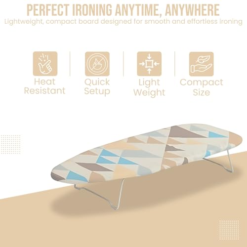 - Compact & Portable – Perfect for small spaces, student rooms, travel, and quick ironing needs. 4 Feet Construction with Non-slip plastic feet to keep it securely in place