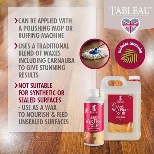 - Tableau Liquid Floor Wax Polish contains carnauba wax for a rich shine