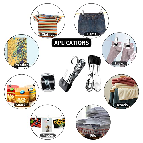 - 👗Wide Application – The clothes pegs for washing line strong can be used for anything less than 2.4cm in thickness. These metal clothes pegs are also suitable for both indoor and outdoor use. You can use our stainless steel clothes pegs to clip clothes, socks, towels, snacks, paper, photos in your kitchen, bathroom, office, RV, dorm room, painting room, etc. You can also use these clothes pins clips to dry clothes outdoor on the clothesline or secure items to hangers.