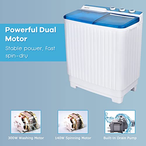 TANGZON Twin Tub Washing Machine, 10.5/8.5/4.5KG Portable Washer and Spin Dryer with Timer Control, Compact Washer for Camping Dorm Caravan RV, 7.5/6.5/3.5KG Washing 3/2/1KG Drying (10.5KG, Blue)