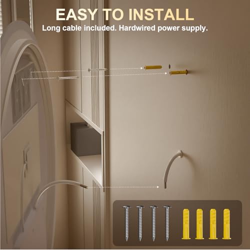 • Effortless Installation: There are three types of LED mirror shapes to choose from: rectangular, round and oval mirror. After Fixed the mirror bracket on the wall by screws and hang the mirror on the holder, you can connect the wire to wall switch by hard wire, it's better done by a professional electrician