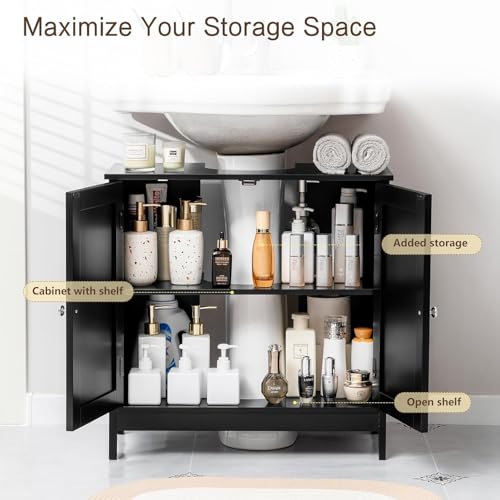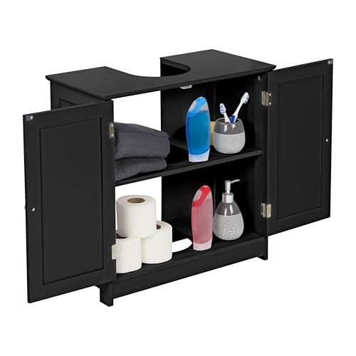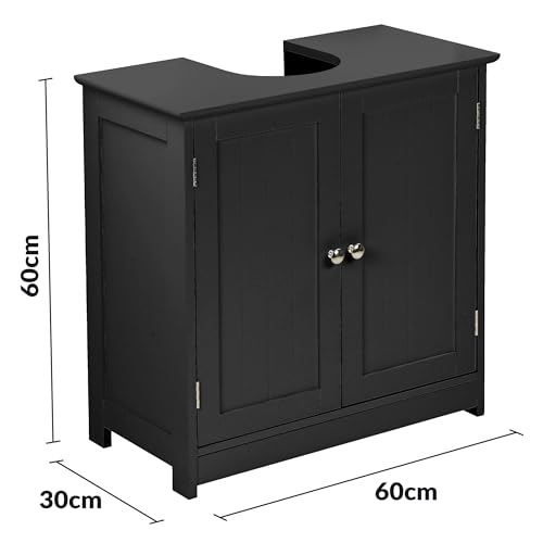 Taylor & Brown Under Sink Bathroom Cabinet Storage Cupboard Organiser Free Standing Wooden Sink Storage Unit Basin with Shelf, Black 60cm x 30cm x 60cm