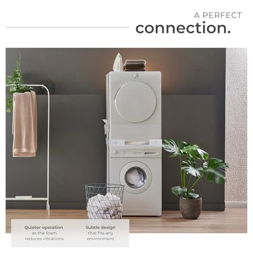 - UNIVERSAL STACKING KIT: Maximise your space with this washing machine and dryer stacking kit, designed to fit standard appliances. The connection frame allows you to stack your washer and dryer in a space-saving manner, making it the perfect storage solution for small bathrooms or laundry rooms. Ideal for saving valuable space, this washing machine and dryer stacker provides a secure and smart solution for compact spaces.