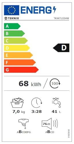 - Super Energy Efficiency: The A energy performance of the Teknix 7kg washing machine ensures both your electricity bill and CO2 footprint remains as low as possible.