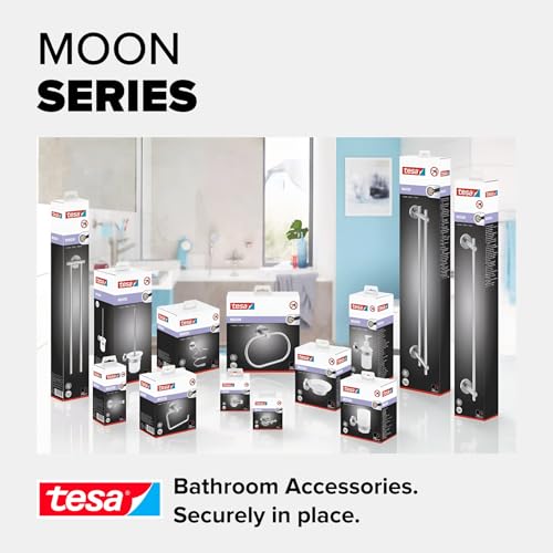 tesa MOON Toilet Brush Set – No Drill Toilet Brush With Frosted Glass Container – Includes Removable Glue Solution