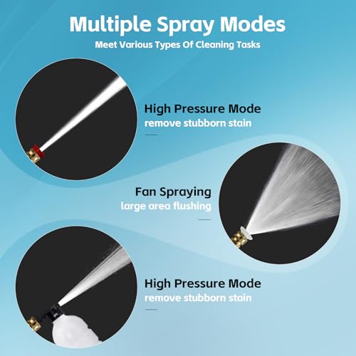 - 【Wireless Convenience】This pressure washer can suck water directly from a bucket or a portable water source such as an outdoor stream, just put the 5M hose with filter basket into the water to start pumping, or screw the bottle onto the water inlet of the pressure washer to supply water wirelessly. It is very convenient to use at home or outdoors.