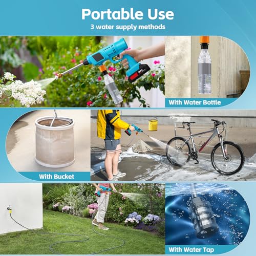 - 【Wide Range of Application】Our cordless pressure washing gun is perfect for cleaning cars, building exteriors, floors, windows, gates, driveways, fences, and hard-to-clean corners. You can even use it to water your lawn or bathe your lovely pets outdoors.