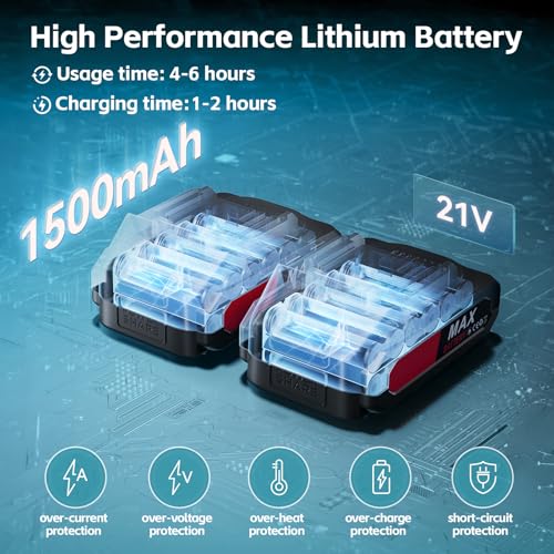- 【Lightweight and Durable】The battery pressure washer is equipped with 1500mAh battery, which can continue to work for at least 40 minutes after fully charged with 21V rechargeable battery. This portable pressure washer is cordless design, more convenient to carry, you can move the position at any time without restriction, let your cleaning work more efficient.