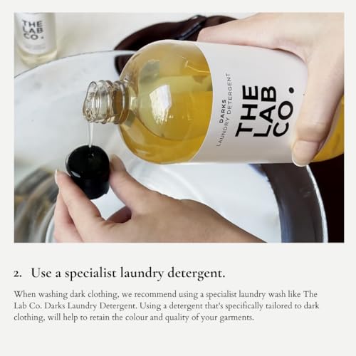 The Lab Co. Darks Wash Liquid. Plant based. Non-Bio Laundry Detergent for washing machines and hand washing. Scented with Lavender and Orange Rind. Size 500ml for up to 32 washes.