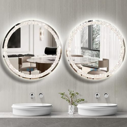 - ✨【Bling Bling – Crystal Bright Area Design】This modern LED mirror complements any decor style, enhancing your bathroom’s fashionable and luxurious look. The high-quality dimmable lights range from 3000K to 6000K, providing a soft and pleasant visual experience. This isn’t just a mirror, but a piece of art that adds convenience and elevates your mood.