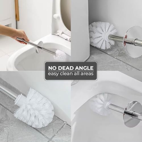 - 🧼 [CLEANING POWER THAT REACHES EVERY CORNER] Our toilet cleaner brush is designed to tackle even the toughest grime. The flexible bristles and ergonomic handle deliver deep scrubbing performance. This toilet brush with holder fits discreetly in any space while providing optimal hygiene.
