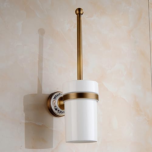 Toilet Brush with Holder for Bathroom Antique Bronze Wall Mounted Toilet Wall Mounted Bathroom Hardware Accessories,Porcelain Design