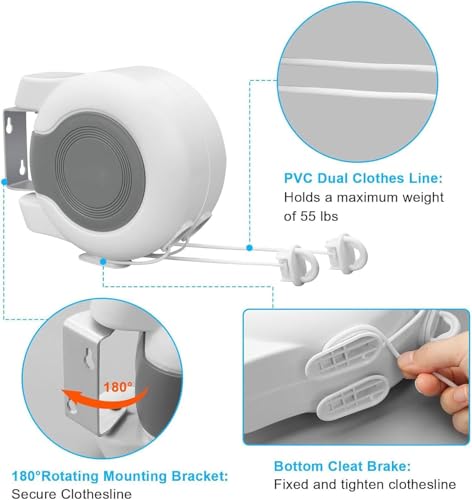- Convenient and Tidy: With this retractable washing line outdoor, the lines can easily be rolled back into the unit to keep your space clutter-free and maintain a clean appearance