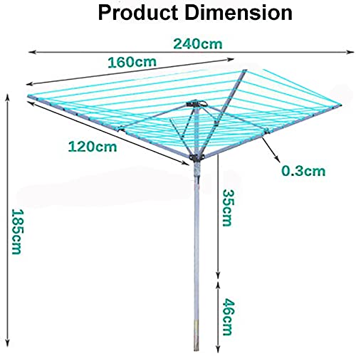 tradefirst Heavy Duty 4 Arm Rotary Washing Lines Outdoor, Rotating Clothes Dryer 45 mm Ground Spike (60 M)