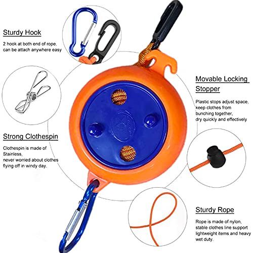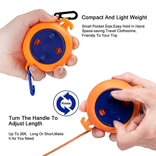 - ROTATING RECYCLING DESIGN – The portable washing line is windproof and retractable, avoiding rope tangles. The small travel washing line comes in a zippered bag. This set of laundry rope sets takes up a small space, is lightweight and suitable for backpacks, suitcases, bags, practical and can be taken with you when travelling.