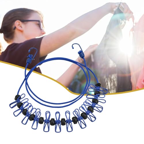 Travel Washing , Clothes Rope, Laundry Washing and Drying Lines, Elastic Washing Lines with Windproof Clips for Garden, Laundry