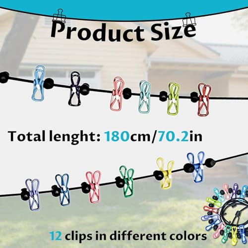 - Travel Washing Line, Elastic Travel Clothes Line, Portable Clothesline, Retractable Clothesline for Travel with 12 Colorful Clothespins For Camping Travel Clothes Laundry Drying Outdoor