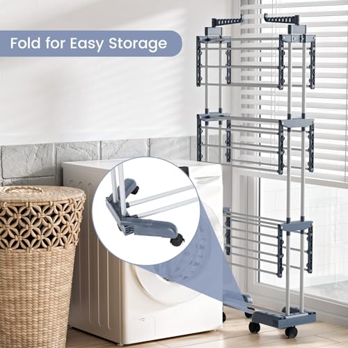 Trintion 4-Tier Clothes Drying Rack, Clothes Airer Indoor Folding 18M Drying Space Large Drying Rack With Casters, 50 Hanging Holes for Laundry Drying