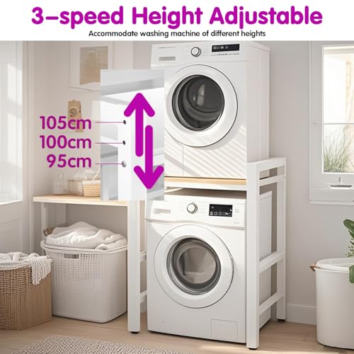 - Height Adjustable Washing Machine Stacking Kits: The Washing Machine Shelf are 3-speed lift adjustable, allowing you to accommodate washing machine of different heights