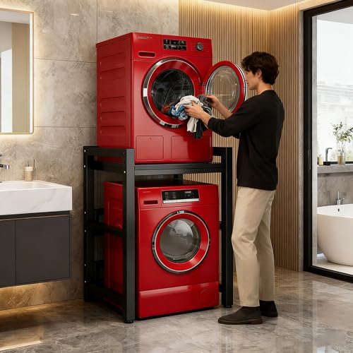 Dernoing Tumble Dryer Stacking Kit Height Adjustable, Metal Frame Washing Machine Stacking Kits 800KG Load, Washing Machine Stand for Home Bathroom/Commercial (Black Black, H:95-105CM)