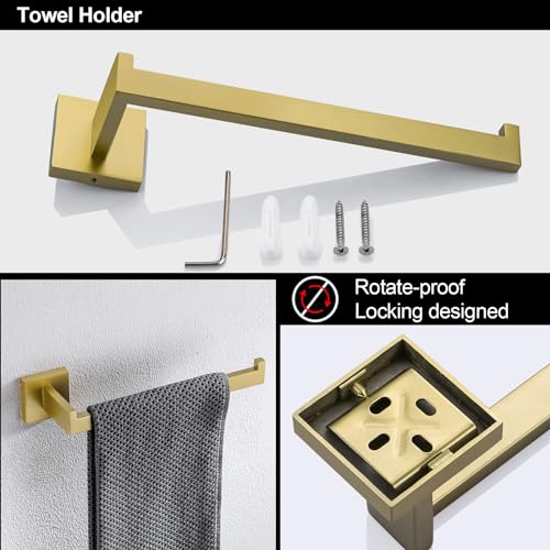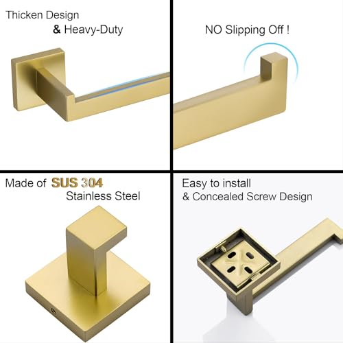 Turs 3 Pieces Bathroom Accessory Set SUS 304 Stainless Steel Toilet Paper Holder Towel Bar Robe Hook Wall Mount, Brushed Gold, Q7010GD