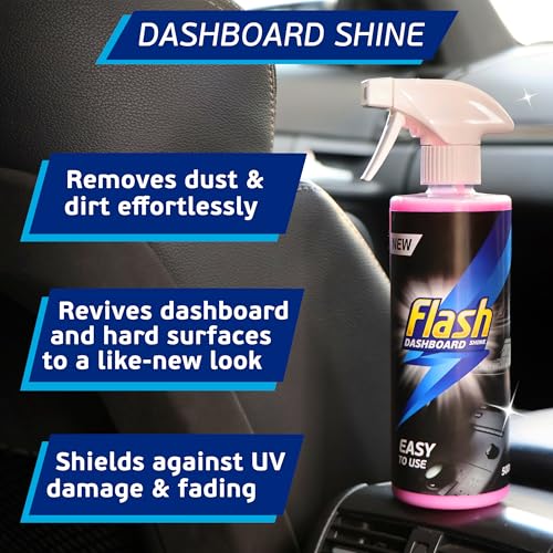 - Complete Car Cleaning Kit: Flash Car Care’s 4x500ml bundle includes Interior All Purpose Cleaner, Glass & Mirror Cleaner, Car Shampoo, and Dashboard Shine. Everything you need for a spotless car inside and out.