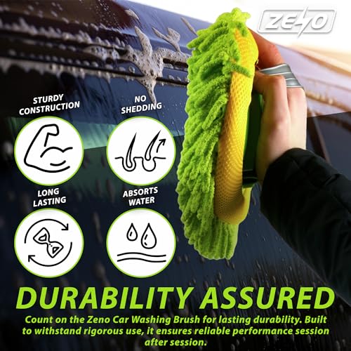 ZENO Car Cleaning Brush | Car Wash Brush | Microfibre Mop with Mittens | Car Washing Brush | Car Wash Kit for Cleaning Van Truck Caravan | Scratch Free 2 x Mop Heads | 1 x Extendable Pole 53-104cm