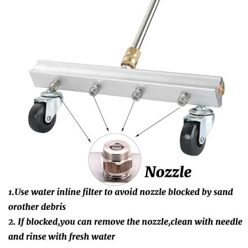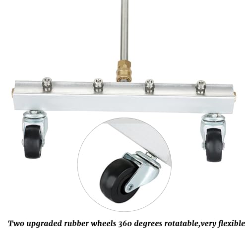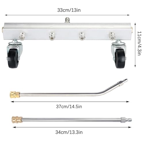 - 【Package Includes】You will receive a 13 inch under car pressure washer with 4 nozzle accessories, 2 pieces 360°rotatable casters, 1/4" quick-connect plug, a 13.3 inch straight extension wand and a 14.5 inch 45°curved wand.