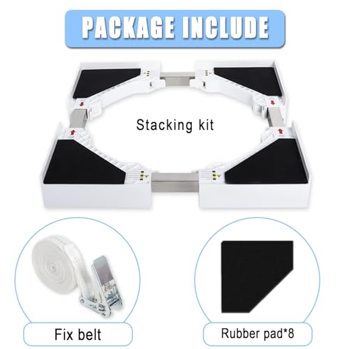 - 【Safe and stable】The included ratchet rope and anti-vibration pads help to stable the washer and dryer, preventing it from wobbling and making noise during use, keeping it stable and safe.