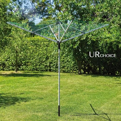 UR CHOICE Rotary Washing Line, 4 Arm Heavy Duty Rotary Airer, 60M Outdoor Whirligig Clothes Dryer, Weatherproof, Space Saving & Adjustable Height with Ground Spike for Garden & Laundry Drying
