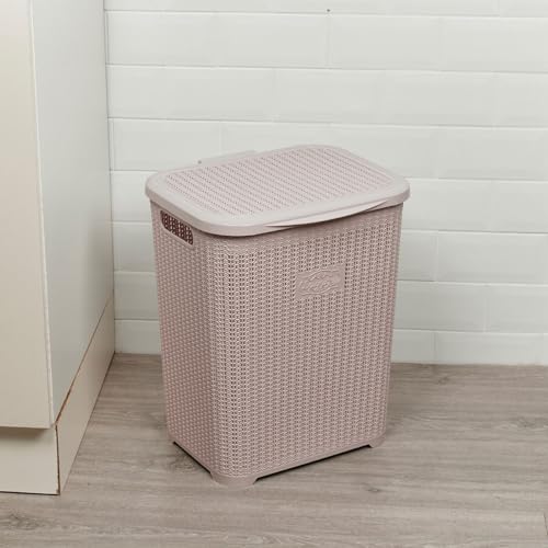 URBNLIVING 45L Plastic Laundry Basket Dirty Clothes Washing Storage Hamper with Handles & Lid (Pink)