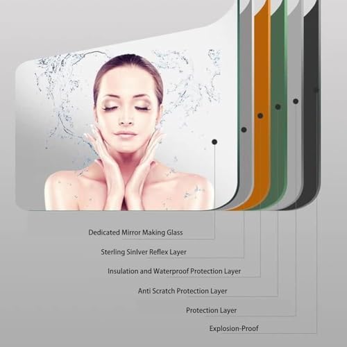 - HD Glass Mirror and Anti-Fog: HD silver mirror, smooth and flat surface, clear image, no distortion, waterproof, anti-oxidation. The unique LED bathroom mirror is equipped with a defogger.