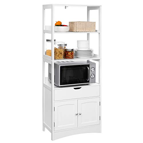 VASAGLE Bathroom Storage Cabinet, Tall Cabinet, Freestanding Bookshelf, with 3 Open Shelves, 1 Large Drawer and 1 Cupboard, 32.5 x 60 x 154 cm, for Living Room, Kitchen, Study, White BBC67WT