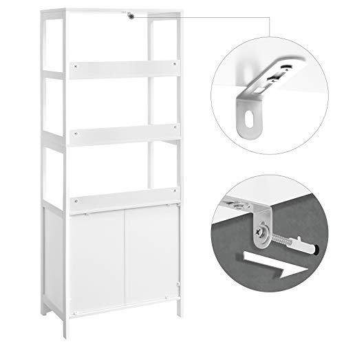 - [Sturdy, Stable, and Safe] Crafted with quality MDF, this bathroom storage cabinet boasts great stability. Also, the included anti-tip kit further enhances the overall stability and gives you a safer living space