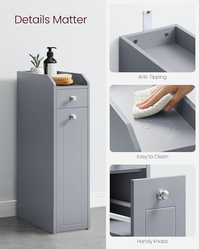 VASAGLE Small Bathroom Cabinet, Slim Bathroom Storage Unit, Bathroom Organiser, Freestanding Toilet Paper Storage Cabinet with Slide Out Drawers, for Small Spaces, Dove Grey BBC847G02