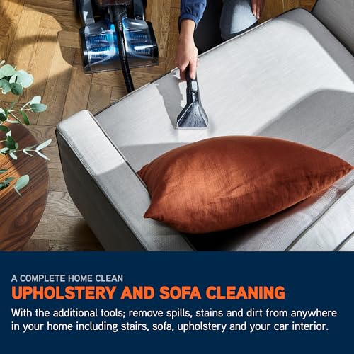 - VERSATILE HANDHELD SPOT AND UPHOLSTERY TOOL ATTACHMENTS :- With the motorised SpinScrub Hand Tool, 2.5m Hose and Wash Tool, you can effectively clean stubborn spots or stains from around your home including stairs, upholstery or car interiors