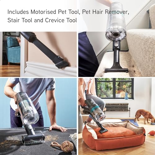 • CONVENIENT PET-SPECIFIC TOOLS AND EASY BIN EMPTYING – Includes Motorised Pet Tool, Pet Hair Remover, Stair Tool and Crevice Tool, Designed for pet hair and messes for lightweight, portable handheld cleaning around the home and car. Dirt is then ejected with a slide for a hygienic, complete bin empty. With a 0.7L capacity