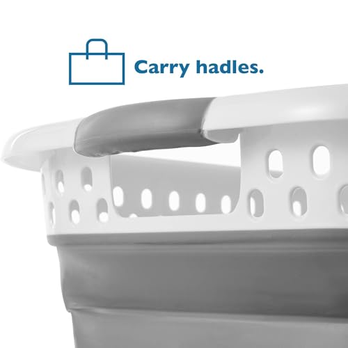Vencier 45L Collapsible Laundry Basket – Foldable Plastic Hamper with Comfort Grip Handles, Ventilated Design & Space-Saving Storage – Portable Clothes Bin for Home, Dorm & Travel – Grey/White