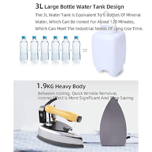 Vertical Steam Iron, 1200W Industrial Bottle Steam Iron with 3L Water Tank, 6 Temperature Control Modes for Dry Cleaning and Clothing Stores