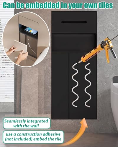 - 【Recessed Toilet Paper Holder】The bathroom wall niche adopts a flush mount design. The surface can be embedded in tiles or ceramic panel, seamlessly integrating into your wall. This toilet paper organizer allows you to effectively save the toilet space.